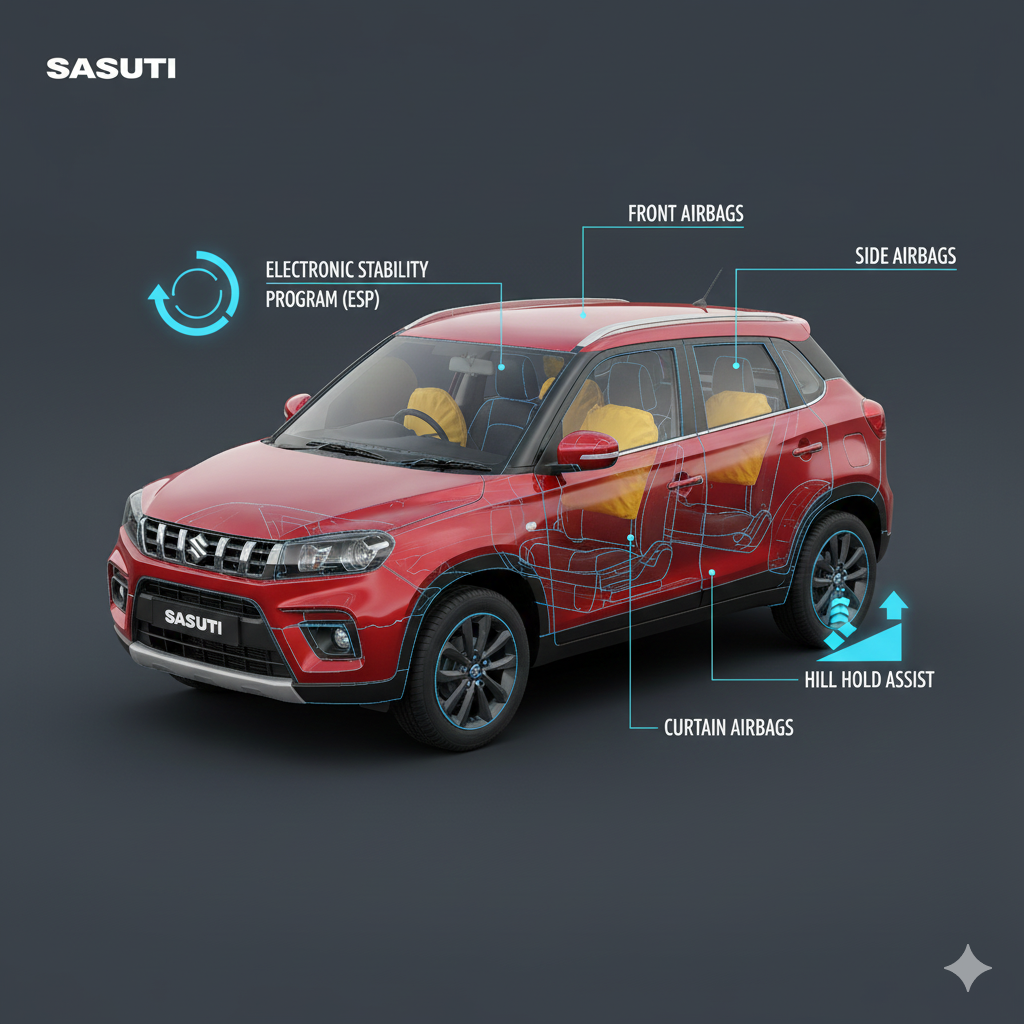 Safety completes the picture. With 6 airbags as standard, ESP with Hill Hold Assist, and a strong body structure, the Brezza gives you peace of mind every time you step out.
